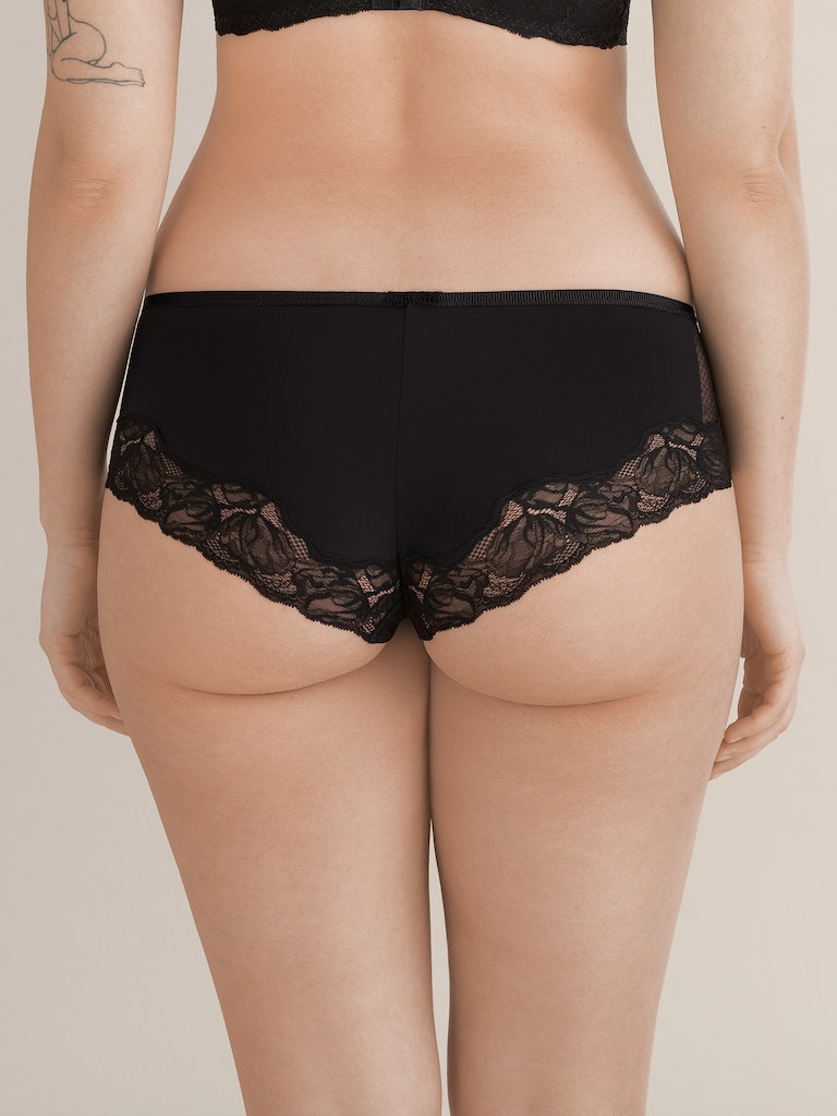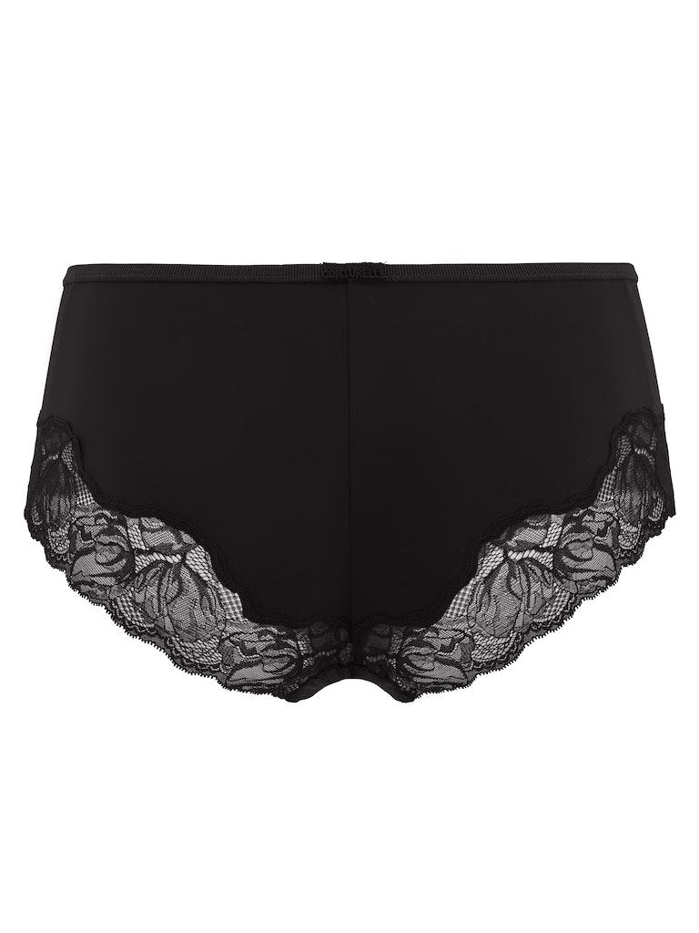 Conturelle shorts da donna Essential 814828 in colore nero. Estremamente affascinanti e seducenti mutandine da donna tipo shorts. I lati delle mutandine sono realizzati in un tulle leggero e delicato con un motivo a pois e in un pizzo morbido e pregiato con un motivo floreale. La parte posteriore delle mutandine è rifinita con una sottile fascia di pizzo delicato. Questi affascinanti shorts sono perfetti quando indossati e il tulle delicato e il pizzo fanno sì che non si evidenzino sotto gli abiti. Hanno un inserto in cotone.